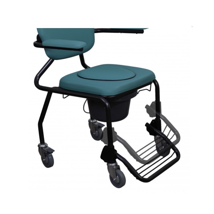 Fotel toaletowy posiada wyjątkowy design i wysoką jakość. Wykonany jest z solidnej metalowej ramy pokrytej proszkowo farbą epoksydową. Elementy tapicerskie są wodoodporne. Siedzisko jest umocowane do ramy za pomocą klipsów w celu zagwarantowania higieny. Fotel posiada uchylne podłokietniki dla ułatwienia transferu pacjenta, oraz komfortowe siedzisko.
