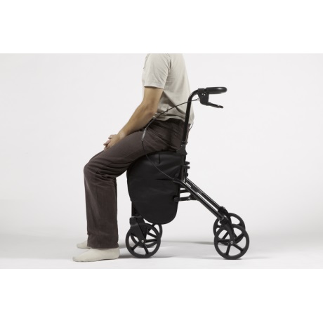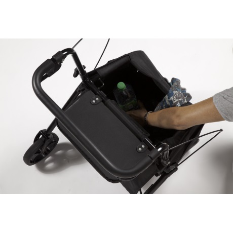 Nowoczesny i lekki chodzik na zakupy. Solidna rama oparta na 4 kołach zapewnia łatwe manewrowanie. Zaprojektowany z dbałością o bezpieczeństwo użytkownikom mnającym problemy z samodzielnym poruszaniem się. Zapewnia dodatkowe oparcie i pozwala odpocząć podczas marszu. Po zablokowaniu hamulca możliwość użycia siedziska. Wyposażony w pojemną torbę oraz dwie dodatkowe kieszenie.