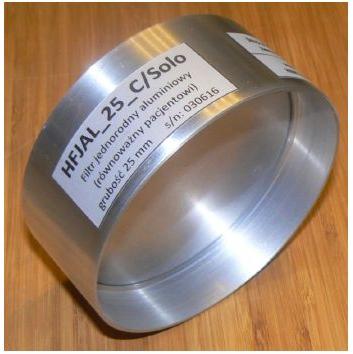 Aluminiowy filtr grubości 25 mm, (fantom równoważny pacjentowi) wykonany jest ze stopu aluminium gatunku 1050A zawierającego 99,5% glinu, przeznaczony do układania na kolimatorze lampy rtg.