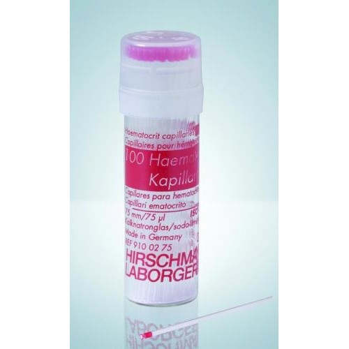 Jednorazowe kapilary do badania krwi z wykorzystaniem wirówek. Dł. 75 mm, precyzyjne, z grubą ścianką. Śred. zewn. 1,42 - 1,68 mm, śred. wew. 1,07 - 1,23 mm. Kodowane kolorami, zgodne z normą DIN 12 772