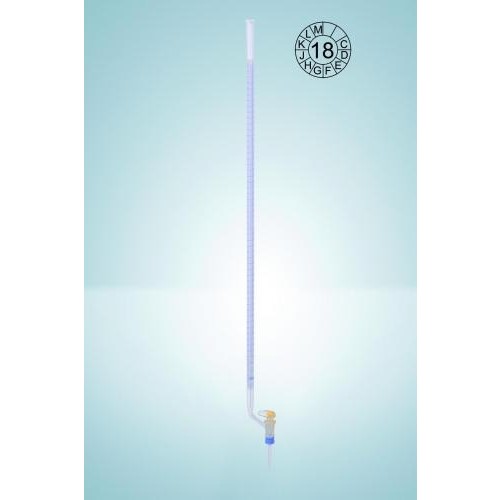 DURAN®. Zgodne z normą DIN EN ISO 385. Wzorcowane na wylew (TD, Ex). Z nadrukowanym oznaczeniem serii. Z paskiem Schellbacha. Podziałka i napisy wykonane niebieską, wysoce kontrastową emalią. Główne punkty podziałki w formie pierścieni. Z wrzecionem z PTFE lub szklanym kurkiem. Długość podziałki ok. 500 mm. Certyfikat zgodności wg DIN 12600. Raport kalibracji serii dostępny na stronie producenta. Indywidualny certyfikat kalibracji lub certyfikat DAkkS (dawny DKD) dostępny na życzenie.