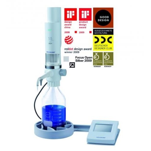Urządzenia miareczkujące z systemem recyrkulacji odczynnika, do miareczkowania bezpośrednio z butli z odczynnikiem. Dostępne w 3 objętościach (10, 20 i 50 mL). Elektroniczna kontrola miareczkowania umożliwia za każdym razem uzyskiwanie powtarzalnych wyników i precyzyjnie zdefiniowaną dynamikę. Pozwalające zaoszczędzić czas szybkie miareczkowanie z następującym po nim miareczkowaniem precyzyjnym zwiększa dokładność i wydajność. Możliwe jest dozowanie objętości od 10 pL do 99,999 mL z rozdzielczością do 3 miejsca dziesiętnego.