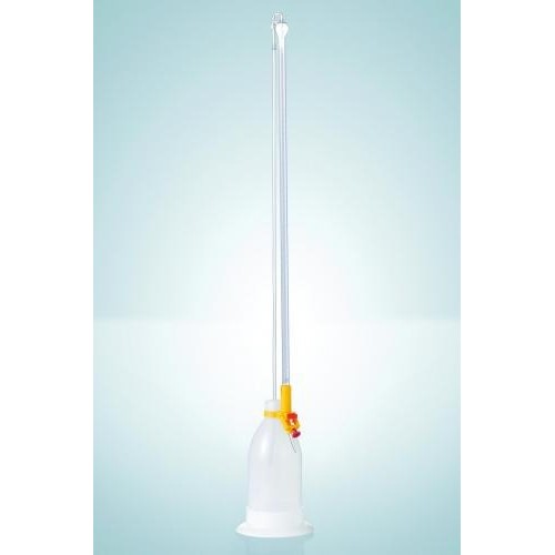 Z paskiem Schellbacha i podziałką wykonanymi wysoko kontrastową, niebieską emalią. Biurety o szybkim przepływie, z butlą z tworzywa sztucznego o pojemności 500 mL (do biuret o poj. do 10 mL) lub 1000 mL (do biuret o poj. 15 mL i większej). Długość podziałki ok. 330 mm, dla 50 mL ok. 550 mm.