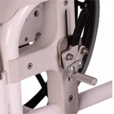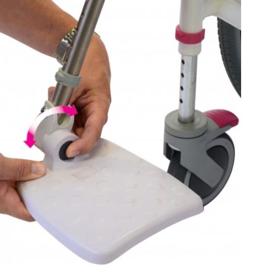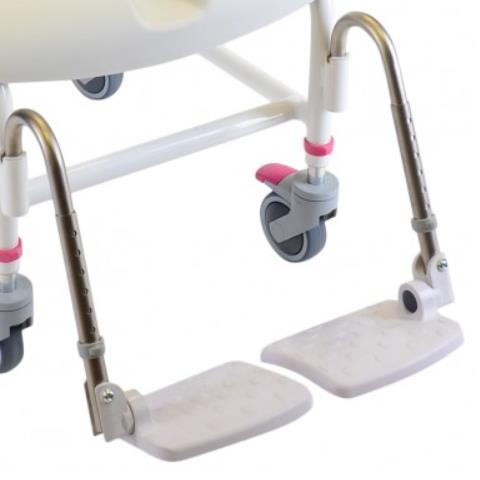 Krzesła prysznicowe Nielsen Line są standardowo wyposażone w regulowane podnóżki. Oparcie z elastycznego plastiku. Alternatywna wersja z oparciem z siatki - model 313031. Wersja bez kół - model 313030.