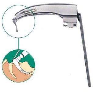 - Zakrzywiony kształt łyżek laryngoskopowych typu Macintosh umożliwia wprowadzenie końcówki do dołka nagłośniowego (epiglottic vallecula) dla uzyskania bezpośredniego obrazu głośni.