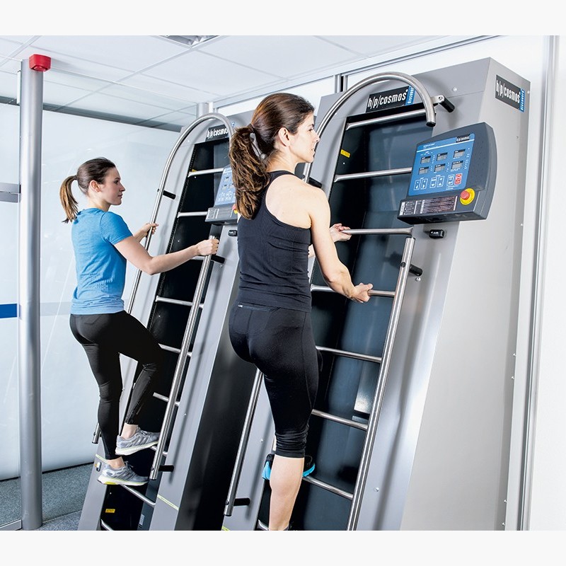 Wyświetlacz parametrów: prędkość, czas wspinaczki (zużycie energii i moc w watach na przemian), droga i częstość akcji serca.