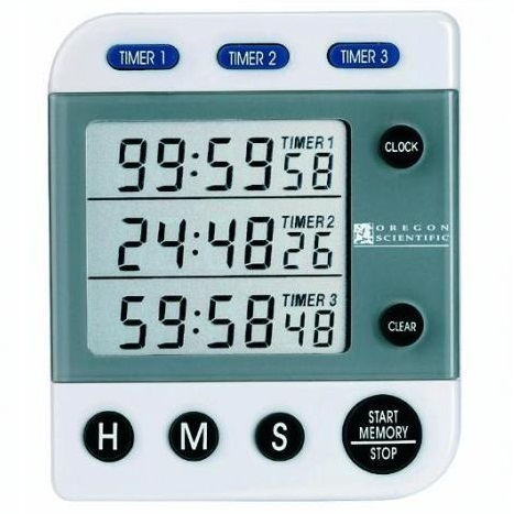 Trzy oddzielne czasomierze w jednym przyrządzie. Odliczanie/naliczanie czasu. Sygnał dźwiękowy po osiągnięciu
