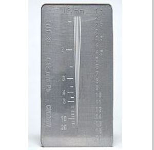 Ołowiany (grubość od 0,1 do 0,3 [mm]) wzorzec rozdzielczości przestrzennej, zamknięty w PMMA.