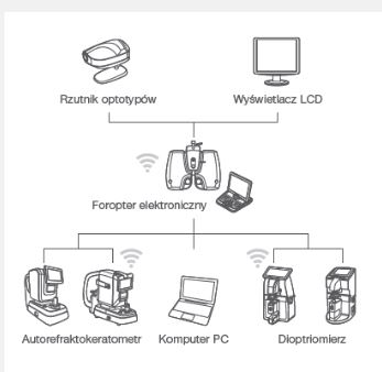 Urządzenia wyposażone w optotypy ( CCP-3100, CDC-4000 i LCD) mogą być podłączane przewodowo i bezprzewodowo. Do urządzenia można również podłączyć komputer PC, co pozwoli na łatwiejsze zarządzanie uzyskanymi danymi pomiarowymi.(Opcja)