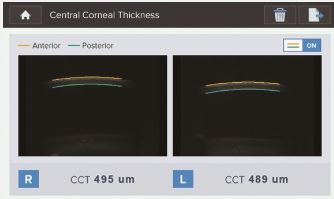 Umożliwia precyzyjny pomiar grubości rogówki przy wykorzystaniu metody Scheimpfluga.