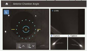 Widok kątów przedniego odcinka oka ACA umożliwia postawienie diagnozy zamknięcia kątów przesączenia, co często jest główną przyczyną jaskry. (HNT-1P)