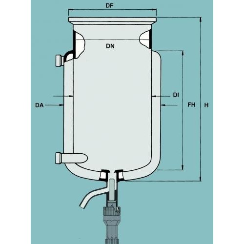 Kołnierz z ożebrowaniem, zgodny z normą DIN 12214. Naczynie z płaszczem termostatującym i zaworem spustowym
