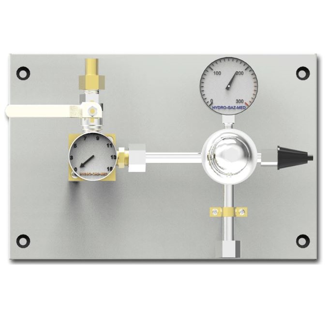 1-stopniowy panel redukcyjny jest wykorzystywany jako rezerwowe źródło zasilania do gazów medycznych w panelu centralnego zasilania „PNEUMAT”.