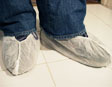 Higieniczne pokrowce na buty, szyte ręcznie, wykończone gumką, pasują na każdy rozmiar butów. Materiał: włóknina polipropylenowa 35 g/m2. Białe.