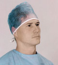 Męski czepek, wiązany na troki. Materiał: włóknina polipropylenowa 17 g/m2. Zielony.