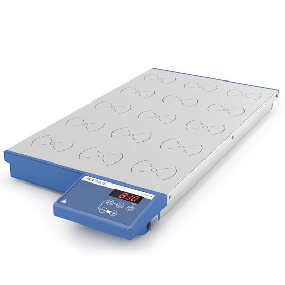Bez grzania. 5, 10 lub 15 stanowiskowe, cyfrowe mieszadła magnetyczne, zaprojektowane do synchronicznego mieszania. Technologia indukcyjna zapewnia cichą, jednorodną pracę w obrębie wszystkich stanowisk. Prędkość pozostaje stała niezależnie od mieszanej objętości. Zamknięta kompaktowa konstrukcja umożliwia łatwe czyszczenie i stanowi ochronę w przypadku zalania. Dodatkowo dostarczane ze zdejmowaną matą antypoślizgową.