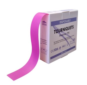 Staza bezlateksowa w rolce wykonana z szerokiego, rozciągliwego paska TPE. Produkt jednorazowego użytku, wytrzymały na rozciąganie, przeznaczony do wywołania zastoju żylnego i uwidocznienia żyły wybranej do nakłucia.