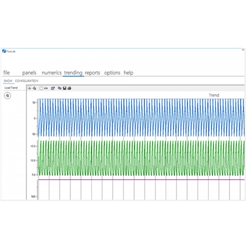 FLOWLAB to oprogramowanie umożliwające pełną obsługę analizatorów przepływu zarówno serii PF-300 jak i Citrex H4 i H5. Dzięki niemu możesz przeglądać i analizować wyniki testów oraz automatycznie wykreślać krzywe w czasie rzeczywistym na ekranie komputera podczas gdy twój analizator jest podłaczony do badanego respiratora. Program umożliwia też generowanie spersonalizowanych raportów z badań oraz ich wydruk lub zapis. Może zapisać do 100 godzin danych testowych jednego przyrządu. Obsługuje aż 15 języków w tym polski. Sam program dostępny jest nieodpłatnie ale wymagany jest zakup licencji wgrywanej do analizatora w celu jego współpracy z oprogramowaniem.