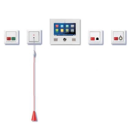 iCall wnosi interaktywnoość wprost do pokoju: Element IP-Touch z ekranem dotykowym umożliwia bardzo intuicyjne użytkowanie. Po zalogowaniu, personel szpitalny może wprowadzić wyniki pomiarów takie jak waga, temperatura lub cioenienie krwi. Wszystkie aktywne wezwania do pokoju, w którym znajduje się IPTouch, są na nim pokazywane. Pacjent może także wprowadzić do niego dodatkowe informacje, oglądać fotografie oraz nawiązywać połączenia telefoniczne. Komunikacja głosowa jest przenoszona za pomocą protokołu SIP. Dzięki temu, każde urządzenie obsługujące komunikację głosową w systemi iCall można zarejestrować jako zwykłego klienta SIP na dowolnym serwerze podłączonym do tej sieci. Obsługa szpitalna może komunikować się z pacjentem z dowolnego telefonu przy pomocy zestawu