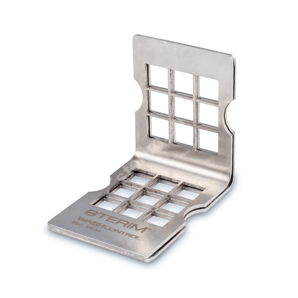 Stalowy uchwyt do testów STERIM® Wash Control pozwala na prawidłowe ułożenie pasków testowych podczas kontroli mycia maszynowego. Konstrukcja uchwytu pozwala na sprawdzenie skuteczności detergentu.