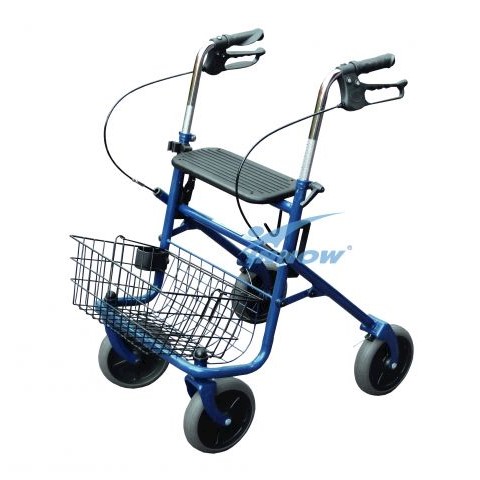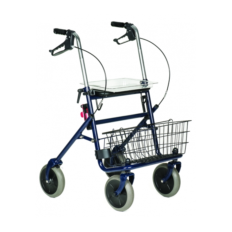 Balkonik spacerowy z hamulcami i koszykiem, jest to uniwersalna, 4 kołowa podpórka do chodzenia, szczególnie po chodnikach i w terenie. Wyposażony jest w koła przednie zwrotne i hamulce ręczne na tylne koła oraz kosz na zakupy.