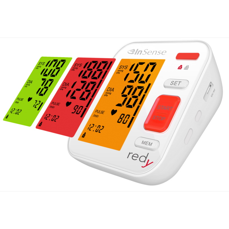 Multi-funkcjonalny, cyfrowy ciśnieniomierz InSense REDy został zaprojektowany w celu uproszczenia pomiaru ciśnienia krwi i tętna w domu oraz zapewnienia spójnych, rzetelnych wyników.