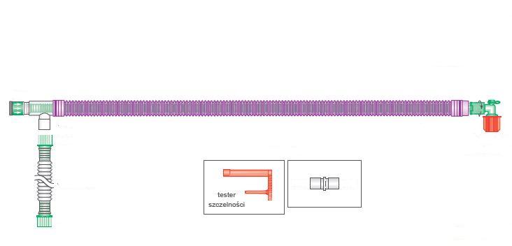 Podstawowe współosiowe układy oddechowe z wewnętrznym przewodem i testerem szczelności.