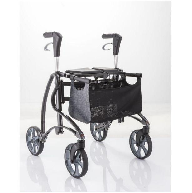Stałe siedzisko wyposażone w łatwo zdejmowany, miękko wyściełany pokrowiec zapinany pasami velcro. Zapewnia komfortowe i bezpieczne miejsce do siedzenia, kiedy użytkownik potrzebuje odpoczynku. Składa się wraz z ramą.