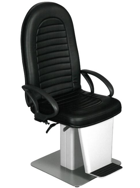Fotel okulistyczny nierozkładany, wyposażony w podłokietniki. Elektryczna regulacja wysokości pacjenta za pomocą przełącznika nożnego. Cena nie obejmuje podnóżka.