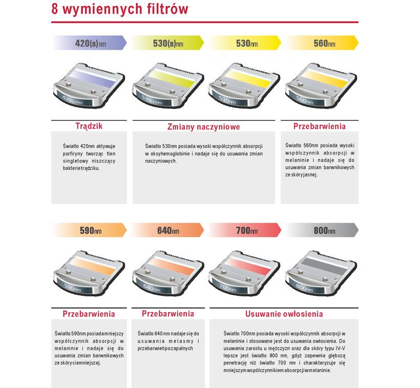Cellec to medyczny IPL wyposażony aż w 9 niezależnych, wymiennych filtrów dzięki którym możliwe jest wykonywanie zabiegów w szerokiej grupie wskazań. Możliwość zastosowania aż 4 filtrów naczyniowych z podwójnym filtrem z precyzyjnie wyselekcjonowanym światłem IPL sprawia, że Cellec V to unikalne na skalę światową urządzenie do skutecznego i bezpiecznego leczenia różnego rodzaju zmian naczyniowych w zależności od rodzaju zmiany i fototypu skóry pacjenta.