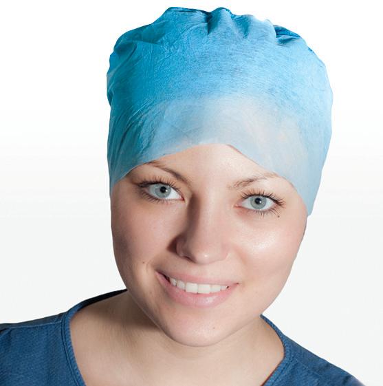 Czepek chirurgiczny o kroju furażerki, w części bocznej wykonany z włókniny pochłaniającej pot, a w części górnej z włókniny perforowanej, ściągnięty z tyłu gumką. Pakowany w kartonik w formie podajnika. Kolor niebieski. Ilość sztuk w opakowaniu "podajnik"/Ilość sztuk w opakowaniu transportowym: 40/400.