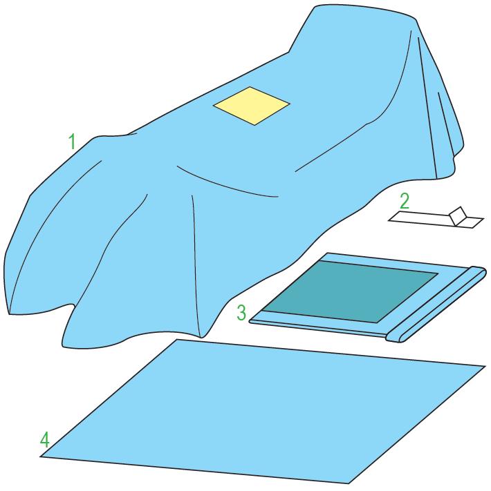ZESTAW MULTIPLEX UNIVERSUS. Elementy zestawu: serweta chirurgiczna o wymiarach 180x340 cm z otworem o wymiarach 30x35 cm wypełnionym folią chirurgiczną 180x340 cm - 1 sztuka; taśma samoprzylepna 9x49 xm - 1 sztuka; osłona na stolik MAYO 79x145 - 1 sztuka; serweta na stolik (owinięcie zestawu) 150x200 cm. Zestaw sterylny. Ilość sztuk w opakowaniu "podajnik": 5.