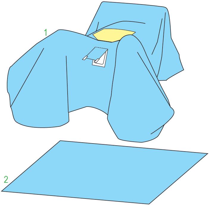 OBŁOŻENIE ABDO PERINEUM 241/280. Elementy zestawu: serweta chirurgiczna do zabiegów bariatrycznych o wymiarach 240x280 cm zintegrowana z ekranem anestezjologicznym i nogawicami, posiada otwór w okolicach jamy brzusznej o wymiarach - dolna podstawa 30 cm, górna podstawa 60 cm, wysokość 40 cm, wypełniony folią chirurgiczną oraz samoprzylepny eliptyczny otwór o wymiarach 12x15 cm, w okolicach krocza z zabezpieczeniem w postaci osłony o wymiarach 20x25 cm - 240x280 cm - 1 sztuka; serweta na stolik (owinięcie zestawu) 150x200 cm. Zestaw sterylny. Ilość sztuk w opakowaniu "podajnik": 4.