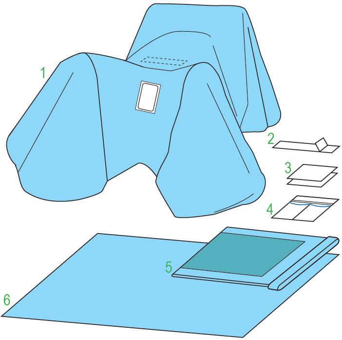OBŁOŻENIE PERINEUM 150/2ST. Elementy zestawu: serweta chirurgiczna do zabiegów ginekologicznych dolnych o wymiarach 240/150x150 cm zintegrowana z nogawicami, posiada otwór samoprzylepny o wymiarach 10x15 cm w okolicach krocza 240/150x150 cm - 1 sztuka; tasma samoprzylepna 9x49 cm - 1 sztuka; ręczniki chłonne 30x40 cm - 2 sztuki; kieszeń dwukomorowa samoprzylepna ze sztywnikiem 2x15x40 cm - 1 sztuka; osłona na stolik MAYO 79x145 - 1 sztuka; serweta chirurgiczna (owinięcie zestawu) 150x200 cm - 1 sztuka. Zestaw sterylny. Ilość sztuk w opakowaniu "podajnik": 5.