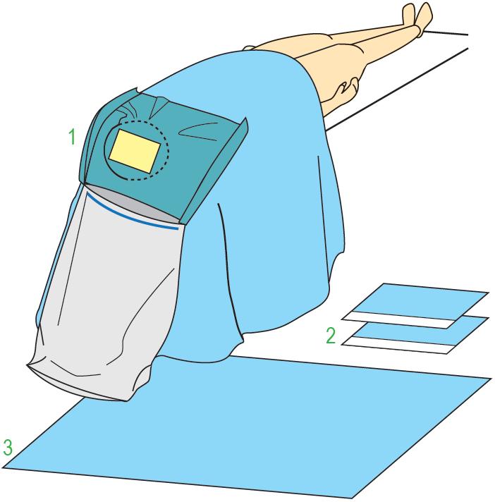 OBŁOŻENIE COMPTUS. Elementy zestawu: serweta chirurgiczna do zabiegów w okolicy głowy o wymiarach 240x180 cm posiadająca otwór wypełniony folią chirurgiczną o wymiarach 25x20 cm, wyposażona w dodatkową warstwę chłonna wokół otworu o wymiarach 50x60 cm z dwoma zakładkami oraz zintegrowany worek foliowy do przechwytywania płynów 240x180 cm - 1 sztuka; serweta chirurgiczna z taśmą samoprzylepną do zabezpieczenia headrestu 45x60 cm - 2 sztuki; serweta na stolik - (owinięcie zestawu) 150x200 xm - 1 sztuka. Zestaw sterylny. Ilość sztuk w opakowaniu typu 'podajnik': 6.