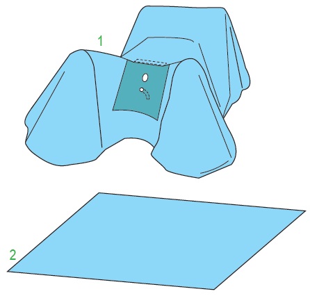 OBŁOŻENIE TUR 150/240. Elementy zestawu: serweta chirurgiczna do przezcewkowych zabiegów urologicznych o wymiarach 150x240 cm zintegrowana z nogawicami, posiadająca otwór na pręcie o wymiarach 5x7 cm i bezlateksową osłonę na palec do badania per rectum, otwory otacza warstwa chłonna o wymiarach 40x35 cm - 150x240 cm - 1 sztuka; serweta na stolik (owinięcie zestawu) 150x180 cm - 1 sztuka. Zestaw sterylny. Ilość sztuk w opakowaniu podajnik: 8.