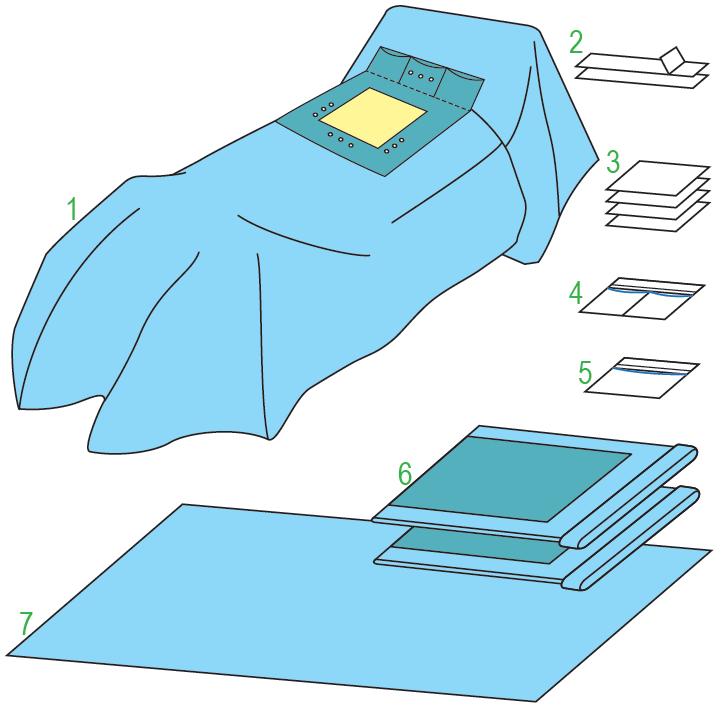 Zestaw MULTIPLEX CORDIS 200/391. Elementy zestawu: trójwarstwowa serweta chirurgiczna do zabiegów kardiochirurgicznych w kształcie litery T, o wymiarach 180/200x340 cm, posiadająca otwór w okolicach klatki piersiowej o wymiarach 35x40 cm, wypełniony folią chirurgiczną i otoczony warstwą wysoko chłonną o wymiarach 75x60 cm z możliwością zamocowania drenów do krążenia pozaustrojowego 180/200x340 - 1 sztuka; tasmy samoprzylepne 9x49 - 2 sztuki; reczniki chłonne 30x40 cm - 4 sztuki; kieszeń dwukomorowa samoprzylepna ze sztywnikiem 2x15x30 cm - 1 sztuka; kieszeń jednokomorowa samoprzylepna ze sztywnikiem 30x30 cm - 1 sztuka; osłony na stolik MAYO 79x145 cm - 2 sztuki; serweta na stolik (owinięcie zestawu) - 150x180 cm - 1 sztuka. Produkt sterylny. Ilość w opakowaniu "podajnik": 4.