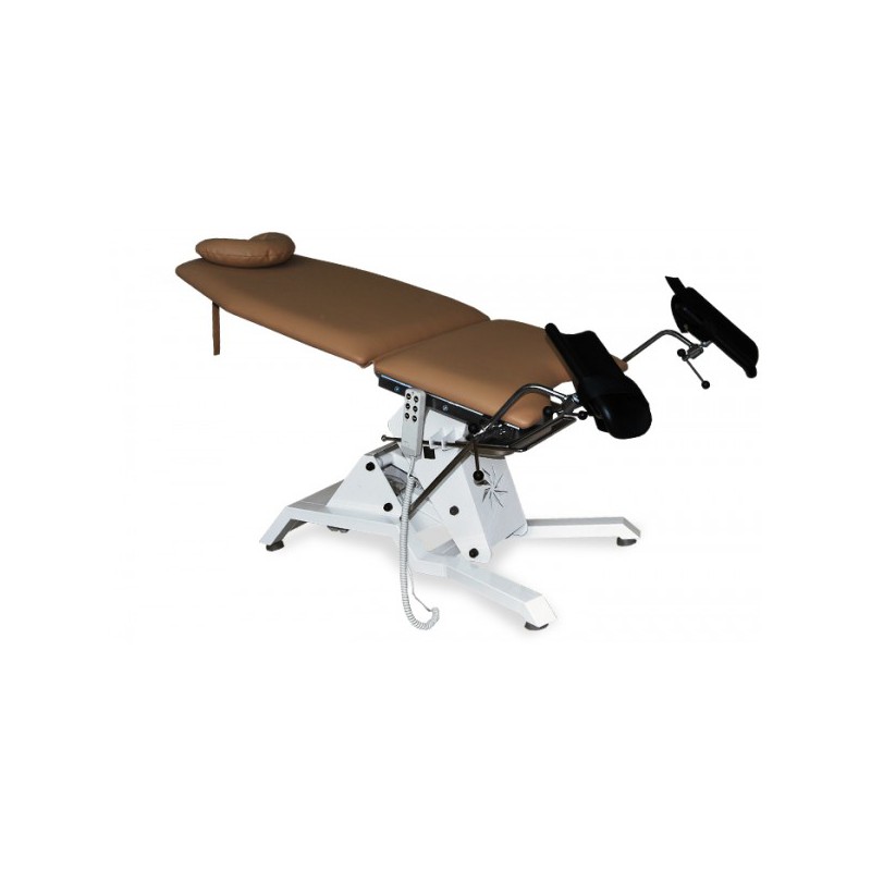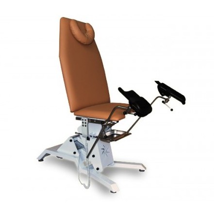 Konstrukcja wykonana z pokrytych farbą proszkową profili stalowych, dzięki czemu jest on stabilny i wytrzymały. Wysokość fotela możemy regulować za pomocą silnika elektrycznego, który sterowany jest pilotem ręcznym. Estetyczne wykończenie nadaje mu nowoczesnego wyglądu. Fotel ma zapewnić pełen komfort i wygodę zarówno dla pacjentów, jak i lekarzy. Składa się z regulowanego oparcia, wygodnego podgłówka i regulowanych na wszystkich płaszczyznach podkolannikach. W standardzie jest również pojemnik nierdzewnej stali. Blat wykonany jest z doskonałego materiału skóropodobnego. Stół umożliwia uzyskanie pozycji leżącej, Trendelenburga i anty-Trendelenburga.