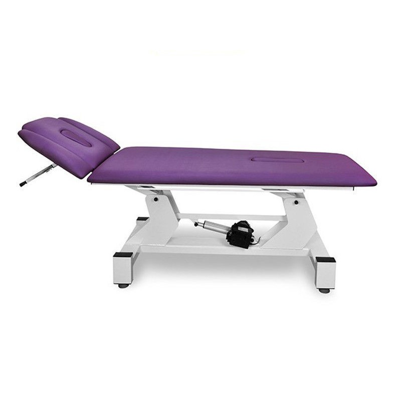 Stół rehabilitacyjny NSR 2 firmy Juventas wyróżnia się stabiliną, metalową konstrukcją pokrytą farbą proszkową. Leżysko stołu składa się z dwóch segmentów. Regulacja wysokości odbywa się przy pomocy ręcznego podnośnika dla wersji manualnej, pilota ręcznego, nożnego lub ramy sterującej w wersji elektrycznej lub pedała "pompującego" w wersji hydraulicznej. Kąt pochylenia zagłówka regulowany jest za pomocą sprężyny gazowej. Stół posiada posiada dwa otwory: w zagłówku oraz w części środkowej leżyska. Dodatkowo stół może być wyposażony w podłokietniki (wersja: NSR 2 PLUS). Wysokość stołu regulowana jest od 58 do 88cm.
