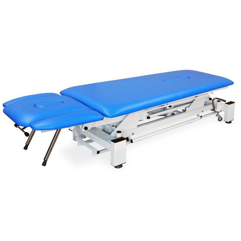 Stół rehabilitacyjny NSR 3 E firmy Juventas wyróżnia się stabiliną, metalową konstrukcją pokrytą farbą proszkową. Leżysko stołu składa się z dwóch segmentów. Regulacja wysokości odbywa się przy pomocy pilota ręcznego, nożnego lub ramy sterującej w wersji elektrycznej. Cechą, która wyróżnia ten model jest duży zakres regulacji wysokości stołu (48 cm - 100cm). Kąt pochylenia zagłówka regulowany jest za pomocą sprężyny gazowej. Stół posiada posiada dwa otwory: w zagłówku oraz w części środkowej leżyska. Dodatkowo stół może być wyposażony w podłokietniki (wersja: NSR 3 E PLUS).
