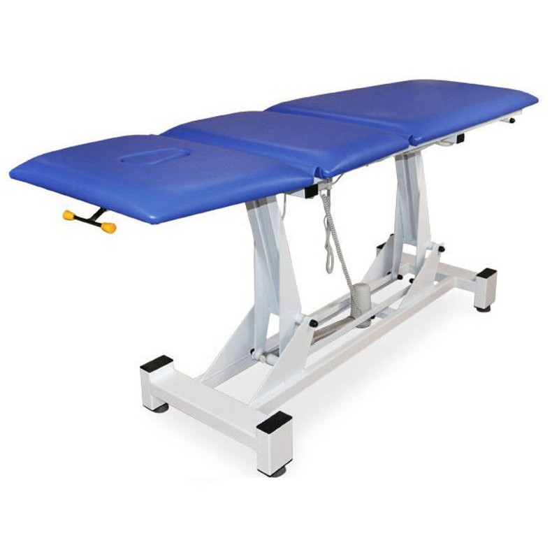 Stół rehabilitacyjny NSR 3 L 2 E firmy Juventas wyróżnia się stabiliną, metalową konstrukcją pokrytą farbą proszkową. Leżysko stołu składa się z trzech segmentów. Regulacja wysokości odbywa się przy pomocy pilota ręcznego, nożnego lub ramy sterującej w wersji elektrycznej. Cechą, która wyróżnia ten model jest duży zakres regulacji wysokości stołu (45 cm - 92cm). Kąt pochylenia zagłówka regulowany jest za pomocą sprężyny gazowej. Stół posiada posiada dwa otwory: w zagłówku oraz w części środkowej leżyska. Dodatkowo stół może być wyposażony w podłokietniki (wersja: NSR 3 L 2 E PLUS).