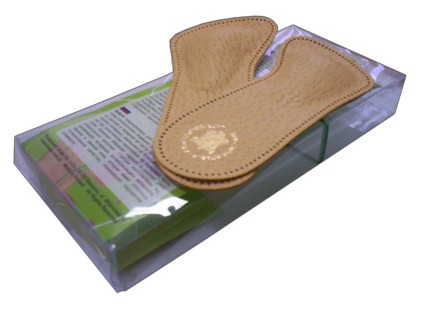 Wkładki do butów z pelotą Ballerin – wkładki skórzane, podpiętki, haluksy, peloty. Zastosowanie: posiadają wbudowaną pelotę metatarsalną; wkładki z pelotą korzystnie zmieniają rozkład nacisków na podeszwowej stronie w przedniej części stopy; dzięki pelocie zmniejszają się dolegliwości bólowe stóp, które powstają przy znacznym przeciążeniu przodostopia; zmniejszają ryzyko powstawania modzeli i nagniotków na podeszwowej stronie stopy. Cechy produktu: wkładki z pelotą przeznaczone są dla osób z płaskostopiem poprzecznym; wkładki wykonane są ze skóry cielęcej; pelota w środku wkładki wykonana ze sprężystej pianki lateksowej; dają odczucie miękkości i wygody podczas chodzenia.