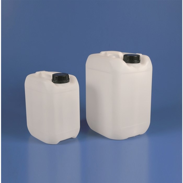 Kanister HDPE z nakrętką i uchwytem. Zbiornik przemysłowy znajdujący zastosowanie nawet w małych laboratoriach. Wykonany jest z PE o wysokiej gęstości. Wygodny uchwyt. Zabezpieczająca nakrętka z uszczelką zgodna z wymaganiami DIN. Certyfikat UN. Nadaje się do kontaktu z żywnością.