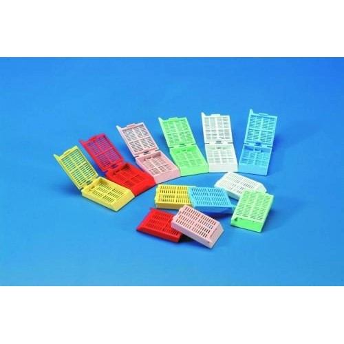 Kasety do zatapiania tkanek w parafinie. Z wieczkiem clip-on, które pęka podczas zamykania, co pozwala na łatwe usunięcie. Łatwe usunięcie.
