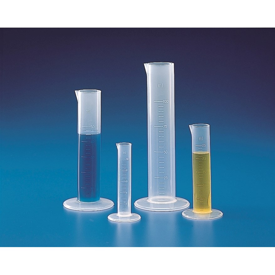 Cylinder miarowy PP typ niski z okrągłą podstawą i tłoczoną skalą Autoklawowalny. Przez krótki czas wytrzymuje temperaturę 120°C. Doskonała odporność chemiczna. Nadaje się do kontaktu z żywnością.