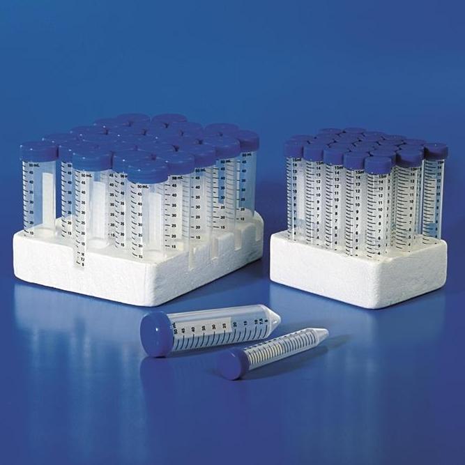 - Probówki stożkowe typu Falcon z czarną podziałką i szczelną nakrętką.