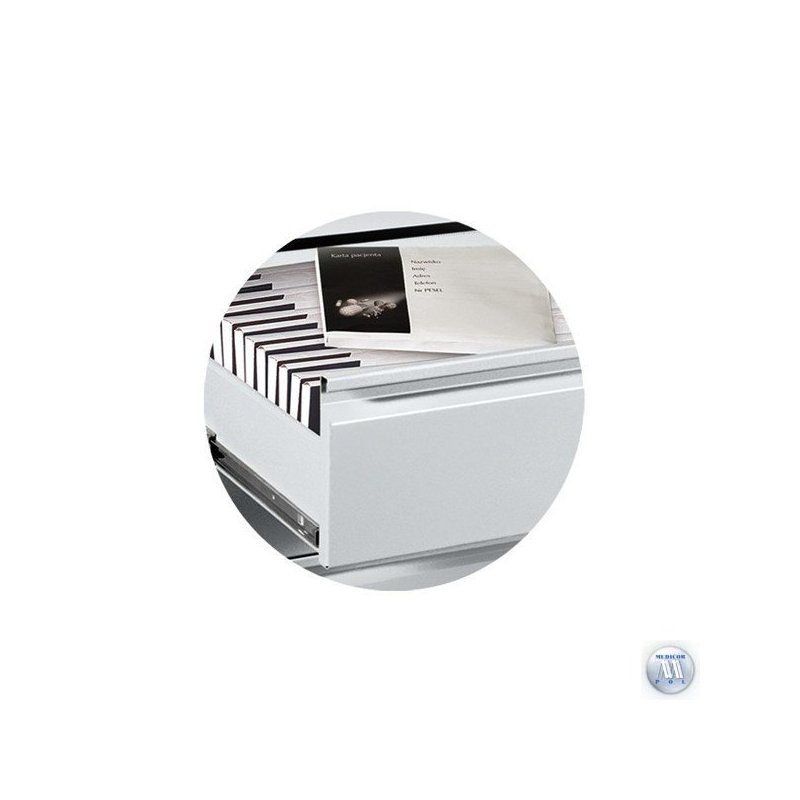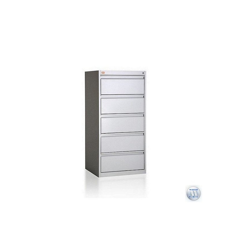Szafa do kopert B-5 to czteroszufladowa szafa, w której można przechowywać koperty formatu B-5 w poziomie. Szuflada została wyposażona w przegrodę, która umożliwia ułożenie dwóch rzędów kopert. Szafę wykonano z blachy czarnej o grubości 0,6mm- 2,0 mm, malowanej farbami proszkowymi (epoksydowo-poliestrowymi) w kolorze RAL 7035 (jasny popiel). Szuflady można przesuwać po prowadnicach teleskopowych z blokadą, która zabezpiecza przed wypadnięciem. Całość zamyka się jednym centralnym zamkiem. Maksymalne obciążenie prowadnic szuflady to 80kg. Szafa zawiera blokadę, która pozwala na wysunięcie tylko jednej szuflady, co zachowuje jej stabilność. Szafa posiada także stopki regulacyjne.