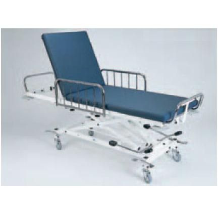 Wózki transportowe w pozycji leżącej z napędem hydraulicznym firmy K.H. Dewert. Wózek dwusekcyjny. Maksymalne obciążenie to 250 kg.