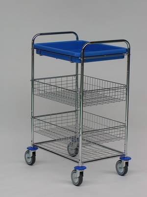 Dwa koszyki i jedna półka. Maksymalna ładowność: 50 kg. Wielozadaniowe wózki medyczne idealnie sprawdzają się w placówkach ochrony zdrowia do rozwożenia lekarstw, środków opatrunkowych, instrumentów medycznych i innych materiałów niezbędnych do opieki nad pacjentem, łatwy dostęp do wszystkich części wózka, możliwość wyboru optymalnego wyposażenia wózka w zależności od potrzeb, łatwość czyszczenia i dezynfekcji, odporne na rdzewienie, gwarancja wieloletniego funkcjonowania bez zmniejszenia walorów użytkowych, cenione przez pracowników oddziałów szpitalnych, ośrodków opieki zdrowotnej, domów opieki paliatywnej i geriatrycznej, domów opieki społecznej, sanatoriów i uzdrowisk.