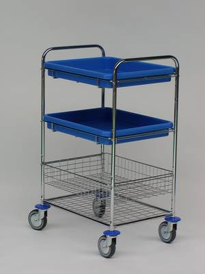 Jeden koszyk i dwie półki. Maksymalna ładowność: 50 kg. Wielozadaniowe wózki medyczne idealnie sprawdzają się w placówkach ochrony zdrowia do rozwożenia lekarstw, środków opatrunkowych, instrumentów medycznych i innych materiałów niezbędnych do opieki nad pacjentem, łatwy dostęp do wszystkich części wózka, możliwość wyboru optymalnego wyposażenia wózka w zależności od potrzeb, łatwość czyszczenia i dezynfekcji, odporne na rdzewienie, gwarancja wieloletniego funkcjonowania bez zmniejszenia walorów użytkowych, cenione przez pracowników oddziałów szpitalnych, ośrodków opieki zdrowotnej, domów opieki paliatywnej i geriatrycznej, domów opieki społecznej, sanatoriów i uzdrowisk.